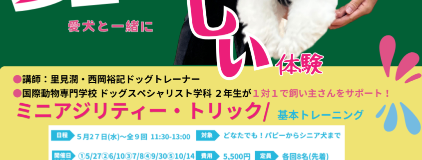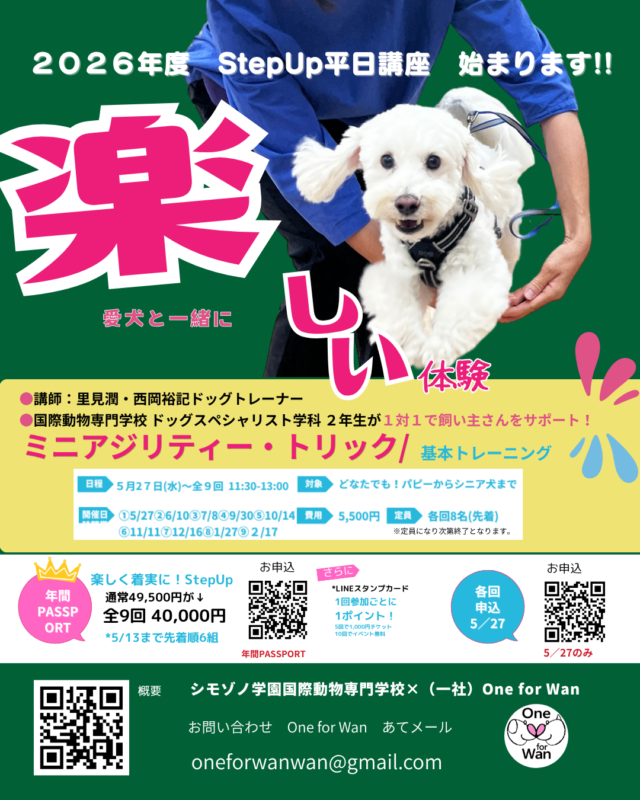 | 2026年度StepUp平日講座@国際動物専門学校 会場:国際動物専門学校 3号館2階 ドッグトレーニングルーム |